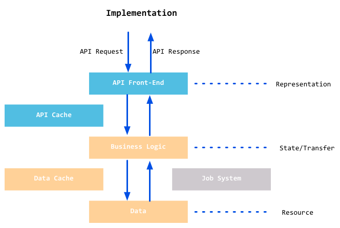 The most important principle of web applications that implement REST is that the interaction between clients and servers are stateless; every request should encapsulate all of the required information. Servers should be able to restart at anytime without the clients being notified. In addition, requests can be responded by any server of the same service, which is ideal for cloud computing. Lastly, because it's stateless, clients can cache data for improving performance.